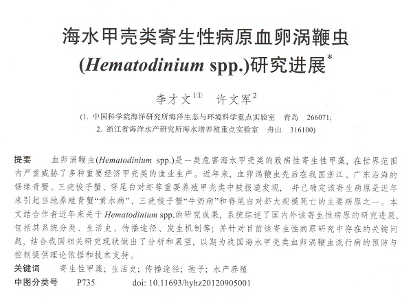 海水甲殼類寄生性病原血卵渦鞭蟲(Hematodinium spp.)研究進(jìn)展