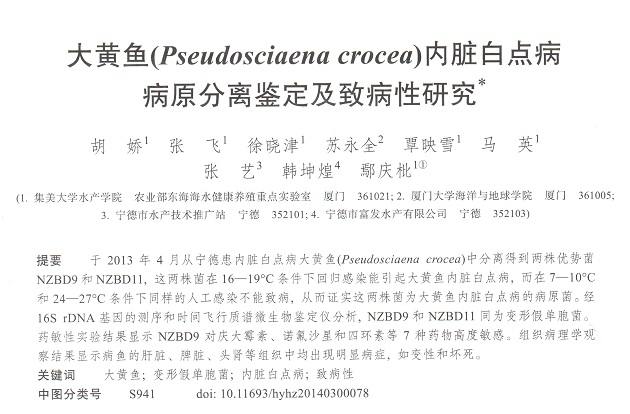 大黃魚(Pseudosciaena crocea)內(nèi)臟白點病病原分離鑒定及致病性研究