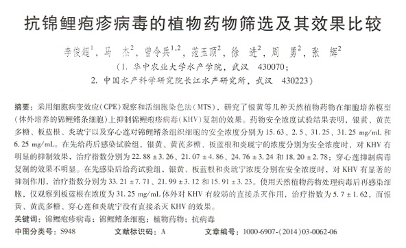 抗錦鯉皰疹病毒的植物藥物篩選及其效果比較