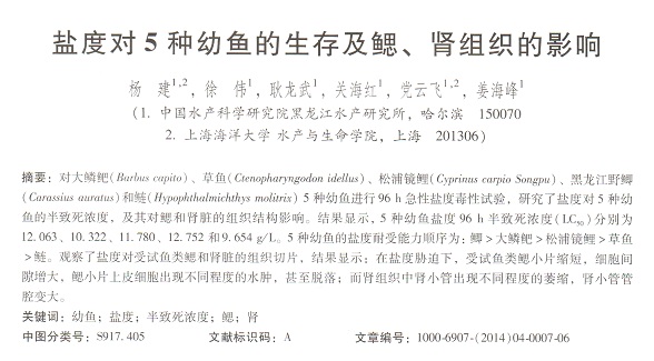 鹽度對(duì)5種幼魚(yú)的生存及鰓、腎組織的影響