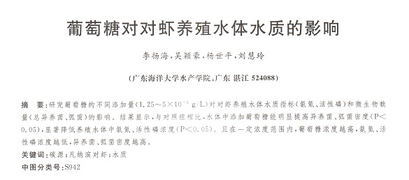 葡萄糖對對蝦養(yǎng)殖水體水質的影響