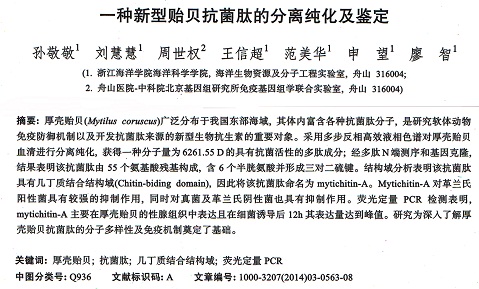 一種新型貽貝抗菌肽的分離純化及鑒定