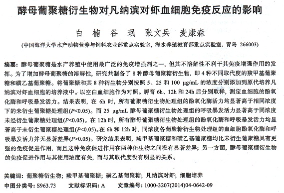 酵母葡聚糖衍生物對(duì)凡納濱對(duì)蝦血細(xì)胞免疫反應(yīng)的影響