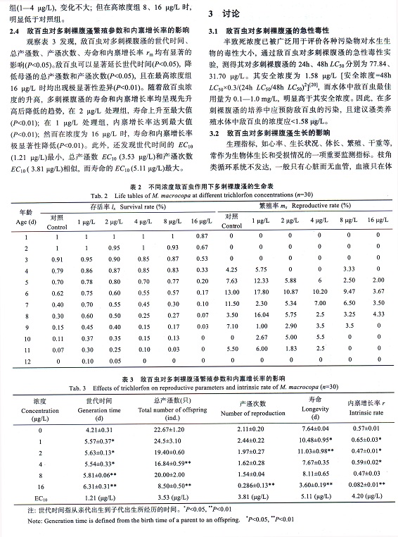敵百蟲對(duì)多刺裸腹溞生長(zhǎng)和繁殖能力的影響(5-3)