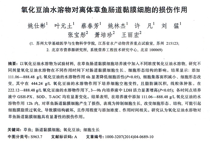 氧化豆油水溶物對離體草魚腸道黏膜細(xì)胞的損傷作用