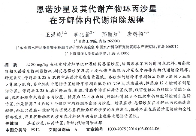 恩諾沙星及其代謝產(chǎn)物環(huán)丙沙星在牙鲆體內(nèi)代謝消除規(guī)律