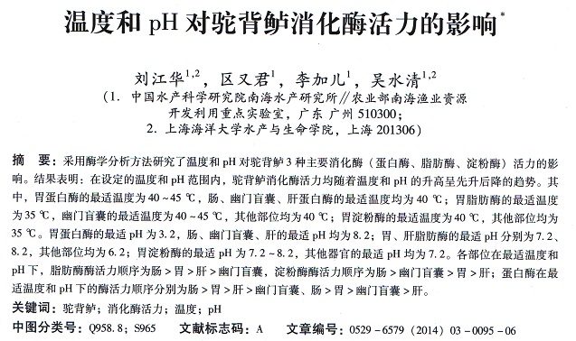 溫度和PH對(duì)駝背鱸消化酶活力的影響