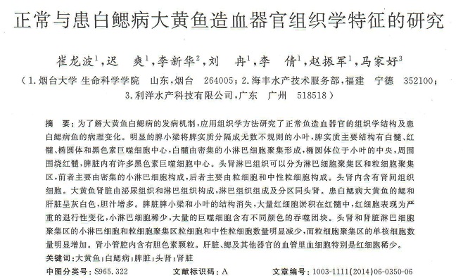 正常與患白鰓病大黃魚造血器官組織學特征的研究