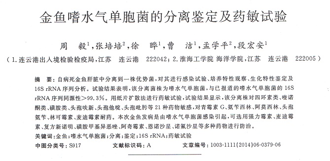 金魚嗜水氣單胞菌的分離鑒定及藥敏試驗