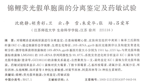 錦鯉熒光假單胞菌的分離鑒定及藥敏試驗