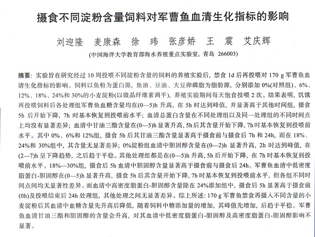 攝食不同淀粉含量飼料對軍曹魚血清生化指標的影響