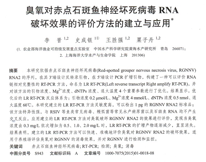 臭氧對赤點(diǎn)石斑魚神經(jīng)壞死病毒PNA破壞效果的評價(jià)方法的建立與應(yīng)用