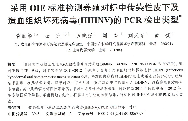 采用OIE標(biāo)準(zhǔn)檢測養(yǎng)殖對蝦中傳染性皮下及造血組織壞死病毒(IHHNV)的PCR檢出類型