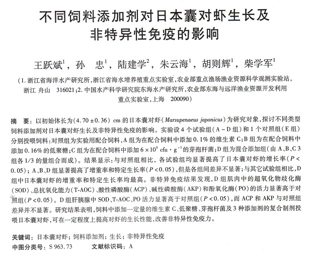 不同飼料添加劑對(duì)日本囊對(duì)蝦生長(zhǎng)及非特異性免疫的影響