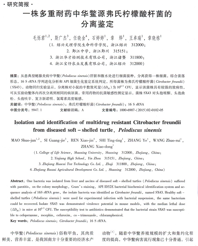 一株多重耐藥中華鱉源弗氏檸檬酸桿菌的分離鑒定(1)