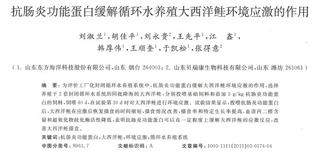 抗腸炎功能蛋白緩解循環(huán)水養(yǎng)殖大西洋鮭環(huán)境應(yīng)激的作用