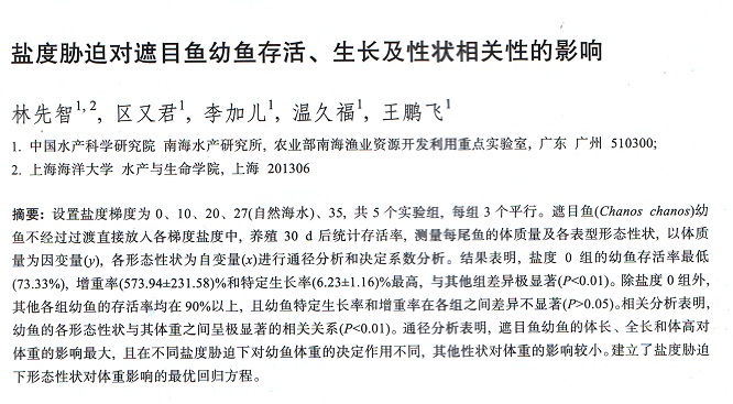 鹽度脅迫對遮目魚幼魚存活、生長及性狀相關性的影響