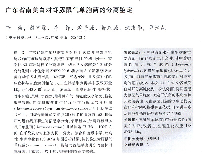 廣東省南美白對蝦豚鼠氣單胞菌的分離鑒定