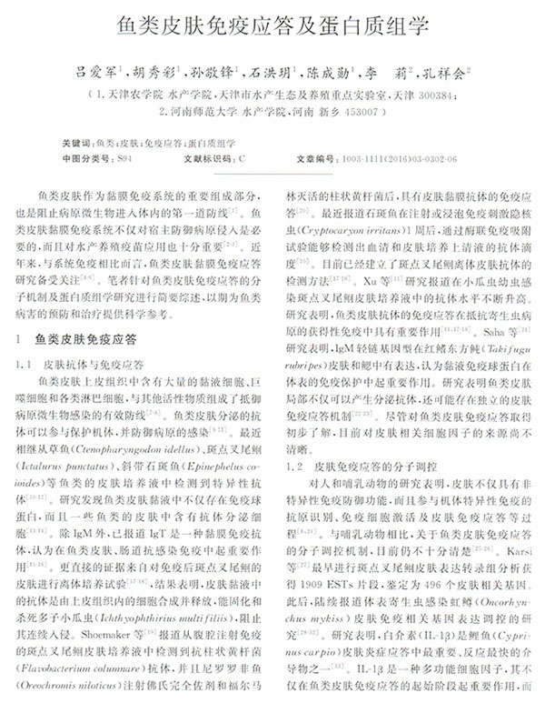 魚類皮膚免疫應(yīng)答及蛋白質(zhì)組學(xué)