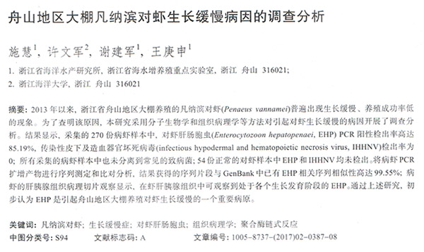舟山地區(qū)大棚凡納濱對蝦生長緩慢病因的調(diào)查分析