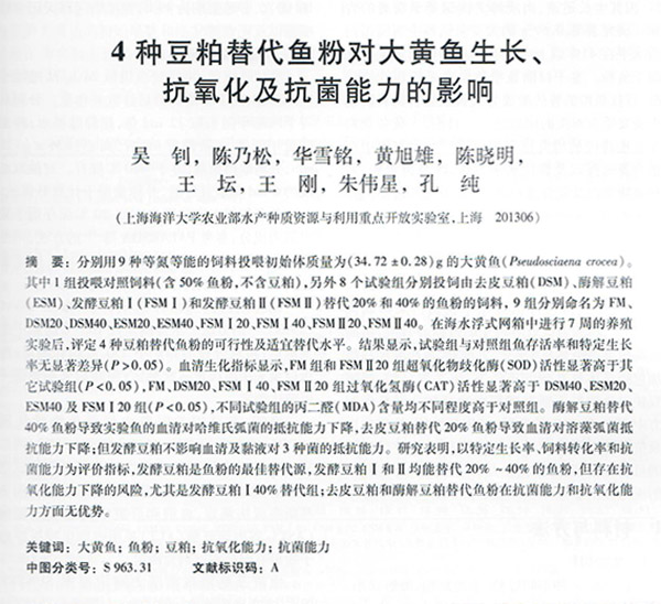 4種豆粕替代魚粉對大黃魚生長、抗氧化及抗菌能力的影響
