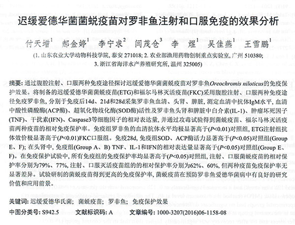 遲緩愛德華菌菌蛻疫苗對羅非魚注射和口服免疫的效果分析