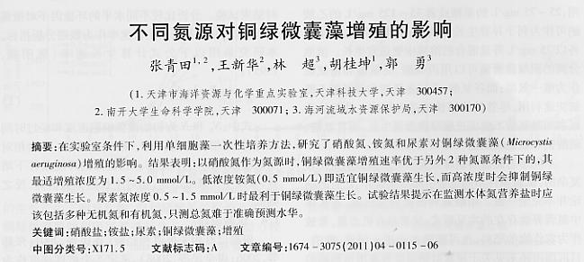 不同氮源對銅綠微囊藻增殖的影響