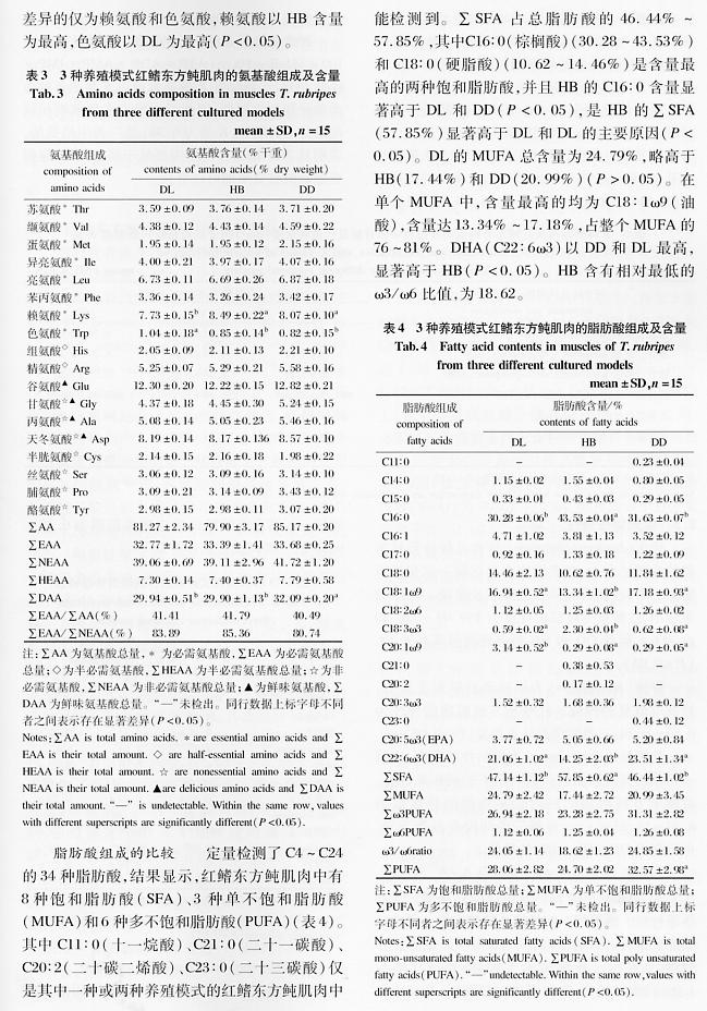 不同養(yǎng)殖模式下紅鰭東方鲀的品質(zhì)比較4
