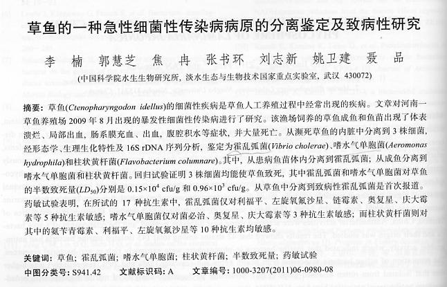 草魚的一種急性細菌性傳染病病原的分離鑒定及致病性研究