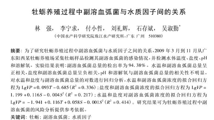 牡蠣養(yǎng)殖過程中副溶血弧菌與水質(zhì)因子間的關(guān)系
