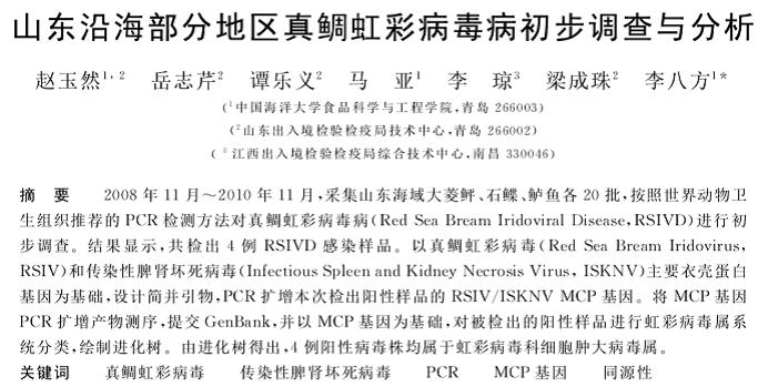 山東沿海部分地區(qū)真鯛虹彩病毒病初步調(diào)查與分析