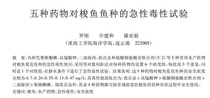 五種藥物對(duì)梭魚魚種的急性毒性試驗(yàn)