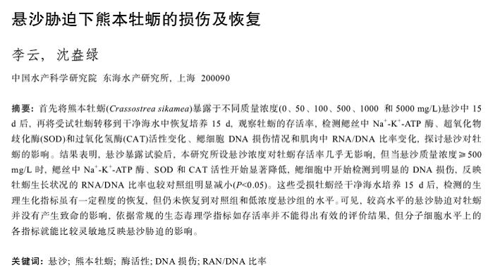 懸沙脅迫下熊本牡蠣的損傷及恢復(fù)
