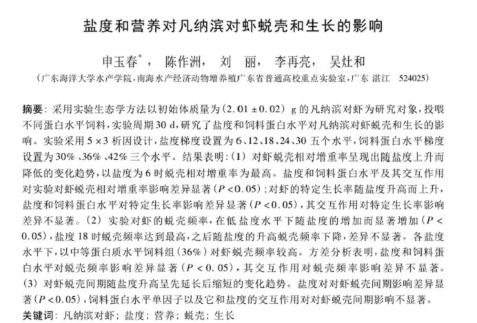 鹽度和營養(yǎng)對凡納濱對蝦蛻殼和生長的影響