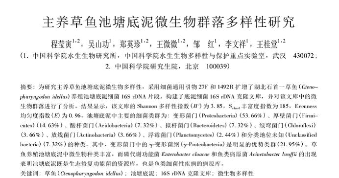 主養(yǎng)草魚池塘底泥微生物群落多樣性研究