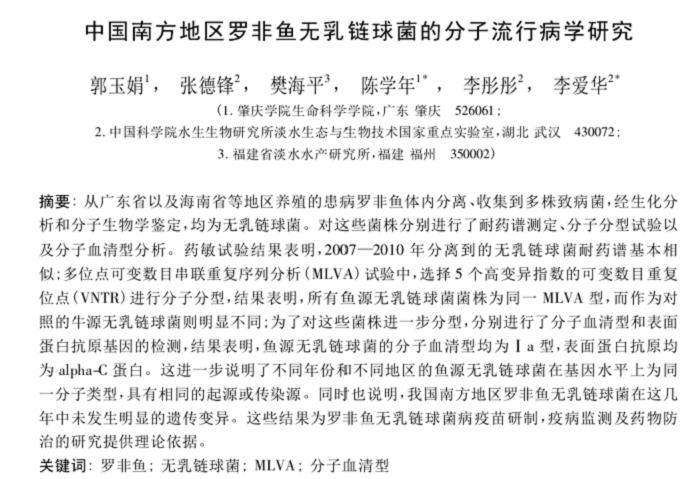中國南方地區(qū)羅非魚無乳鏈球菌的分子流行病學(xué)研究