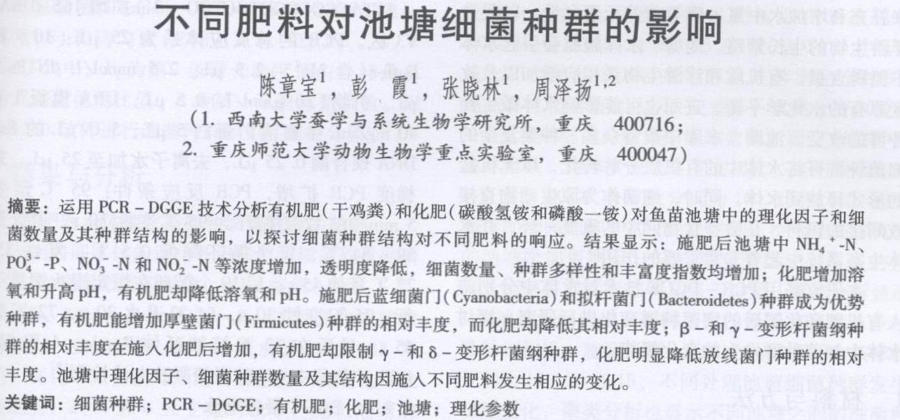 不同肥料對池塘細菌種群的影響