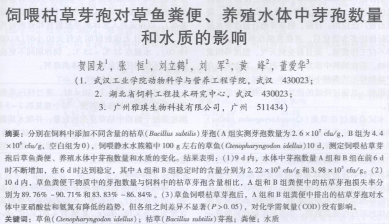 飼喂枯草芽孢對草魚糞便、養(yǎng)殖水體中芽孢數(shù)量和水質(zhì)的影響