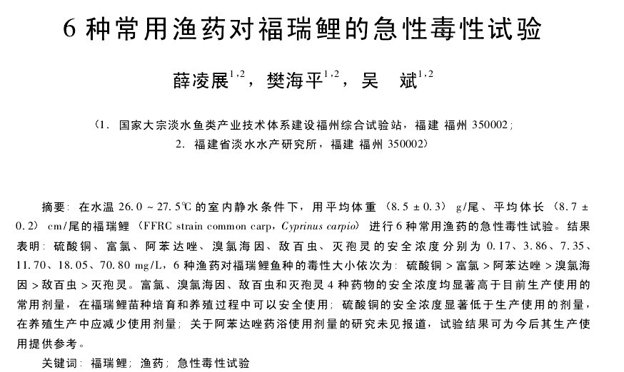 6種常用漁藥對福瑞鯉的急性毒性試驗