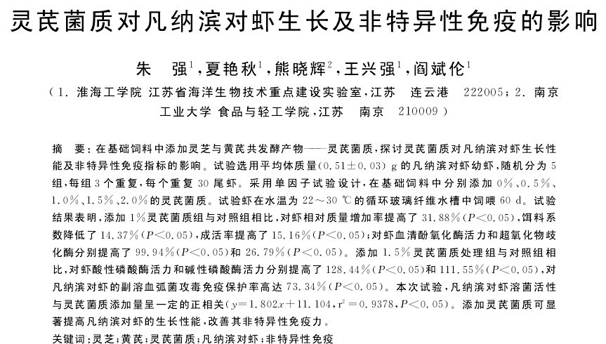 靈芪菌質(zhì)對(duì)凡納濱對(duì)蝦生長(zhǎng)及非特異性免疫的影響