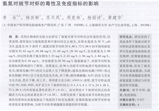 氨氮對斑節(jié)對蝦的毒性及免疫指標(biāo)的影響