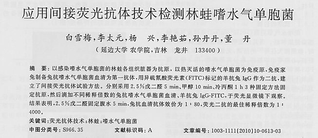 應(yīng)用間接熒光抗體技術(shù)檢測林蛙嗜水氣單胞菌