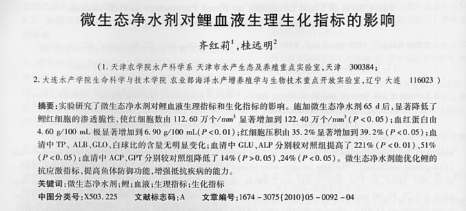 微生態(tài)凈水劑對鯉血液生理生化指標(biāo)的影響