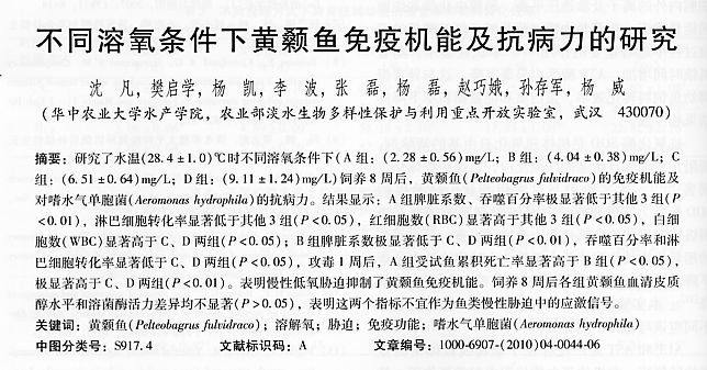 不同溶氧條件下黃顙魚免疫機(jī)能及抗病力的研究