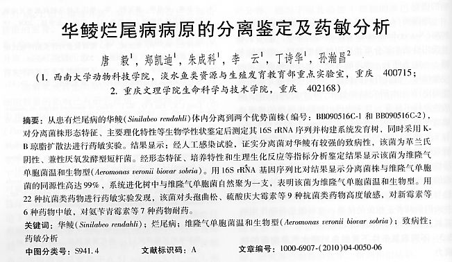 華鯪爛尾病病原的分離鑒定及藥敏分析