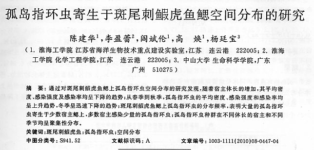 孤島指環(huán)蟲寄生于斑尾刺鰕虎魚鰓空間分布的研究
