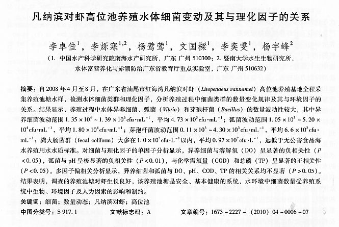 凡納濱對(duì)蝦高位池養(yǎng)殖水體細(xì)菌變動(dòng)及其與理化因子的關(guān)系
