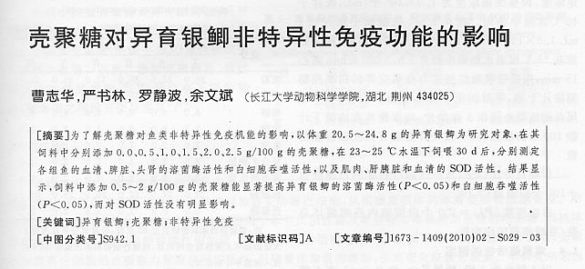 殼聚糖對(duì)異育銀鯽非特異性免疫功能的影響