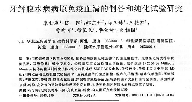 牙鲆腹水病病原免疫血清的制備和純化實(shí)驗(yàn)研究