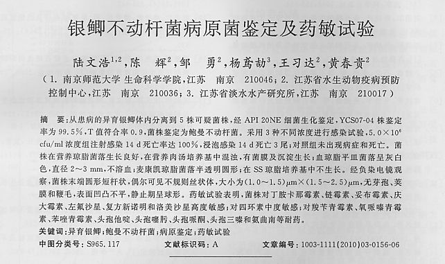 銀鯽不動桿菌病原菌鑒定及藥敏試驗